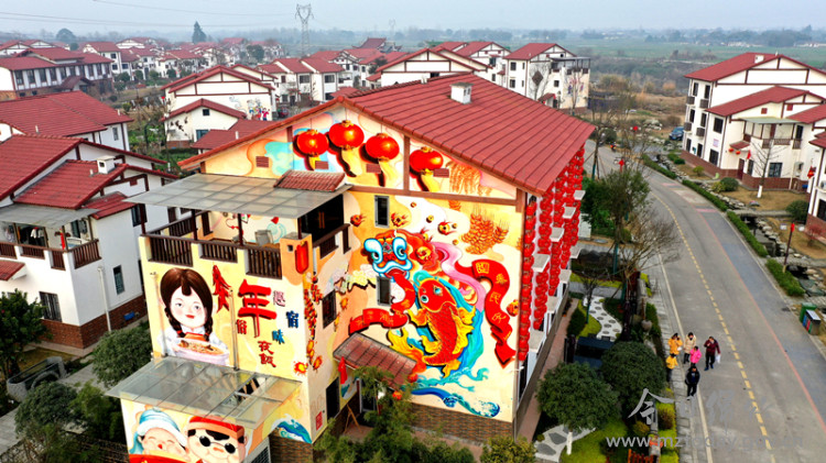 当天,这里的年俗味道吸引了众多媒体和市民关注的目光。高挂的大红灯笼,川西民居农家白墙上绘制多幅反映过年习俗的年画,描述了写春联、腊月二十六割年肉、正月十五元宵花灯等热闹的场景。这里不仅用年画反映过年的习俗,还有年趣、年俗、年味、年夜饭等场景展现过年的氛围。