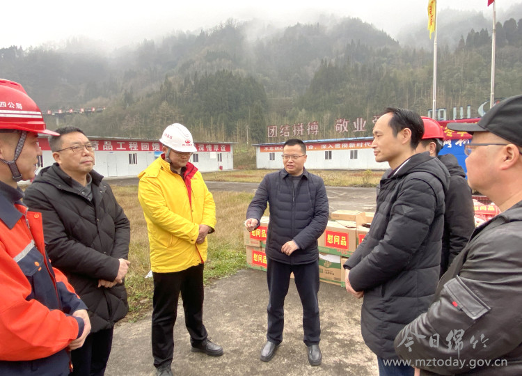 1月21日上午,市委常委、副市长李强,市人大常委会副主任、市交通局党委书记徐关鹏率队来到四川路桥绵茂公路建设项目部,看望慰问一线工人,为他们送去党和政府的亲切关怀和新春祝福。