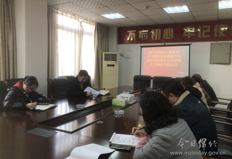 “要把学习贯彻全会精神作为聚焦残联主业主责的重要政治任务,抓好全面落实,坚持责任担当,履行好‘代表、服务、管理’职能,推动全面从严治党责任落地生根。”近日,市残联召开全体干部职工大会,学习贯彻落实德阳市纪委九届二次全会暨深化作风纪律建设大会精神,要求市残联系统要在作风纪律建设上持续加力,加强对残疾群众的服务,解决好残疾群众的急难愁盼问题,坚决杜绝慵、懒、散、浮、拖,努力营造风清气正的政治生态环境,以求真务实的工作作风做好新时代残疾人工作,为绵竹市残疾人工作再上新台阶提供坚强的纪律保证。