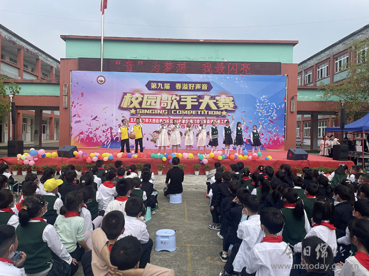 4月8日下午,大西街小学春溢校区举行了“音为梦想 我最闪亮”第九届春溢好声音校园歌手大赛活动。 比赛现场,选手们身着表演服,自信满满地走上舞台。《童心向党》《志愿军战歌》等一首首红色歌曲,充分表达了孩子们对党和祖国的热爱之情。《明天你好》《小孩子大梦想》等歌曲悦耳动听,传递出孩子们对未来的期盼和展望。台下的观众们挥舞手臂,一起合唱,欢快的氛围感染着每一个人,现场不时响起热烈的掌声。 “校园歌手大赛不仅陶冶了艺术情操,也给孩子们了一个自我展示的舞台。” 春溢校区校长尹崇艳介绍,春溢好声音歌手比赛已经连续举办了九届,是学校的一项品牌活动,不仅受到了学生的喜爱,更让校园处处洋溢着朝气和活力。她表示,今后学校将不断丰富展示内容、创新展示形式,让更多的学生参与到音乐活动中来,让艺术之花在校园中盛开得更加灿烂。 市关工委、剑南街道相关负责人参加了活动。