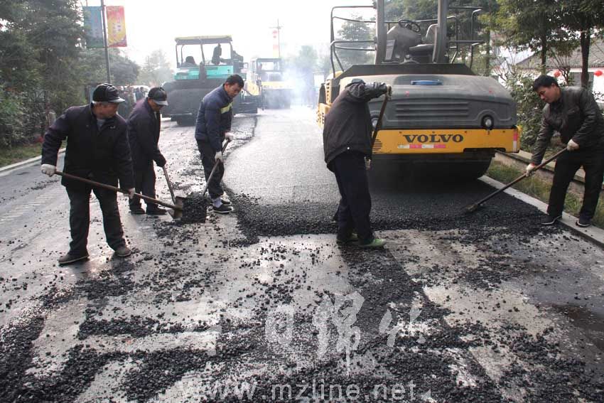 清泉路工程正在铺设沥青路面