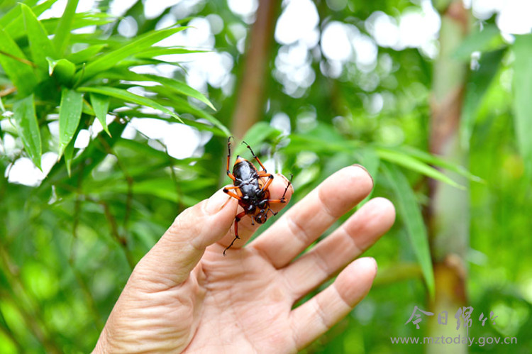 近段时间,绵竹退休教师杨林在汉旺镇新开村精心繁育的绵竹迎来竹笋萌发期,却遭遇了被称为“电钻小能手”的竹笋象鼻虫的侵袭,严重影响了竹林的正常生长。 8月7日,杨林在巡护时,再次从嫩竹笋上捉到了几只竹笋象鼻虫。短短两天时间,他已累计捉到20多只竹笋象鼻虫。