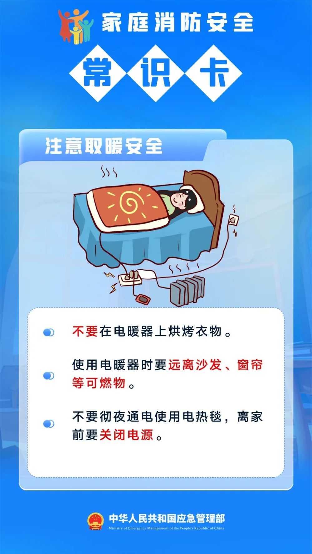 近日 在一些社交平台上 一些网友晒出电暖器的“妙用”方法: 烘衣服、烤肉、烤豆腐、烤花生 然而 这些”妙用“背后 存在着不小的安全隐患 稍有不慎,极易引发火灾 电暖器烤肉 一滴油就产生火花 12月3日,浙江杭州市拱墅区半山消防救援站进行了一场有关取暖器火灾隐患的实验。 实验中,消防员将一个功率为450瓦的电暖器翻倒后,在防护网上放新鲜的猪肉、腊肉和虾。 电暖器打开后,消防员使用测温枪对设备内部进行测温。温度计显示,电暖器打开1分钟后,设备内部的发热管中心温度达到了600℃。大约5分钟,放在电暖器表面的虾、肉等就熟了,猪肉和腊肉在高温的作用下“滋滋冒油”。 这时,肉表面的油滴落到电热器的发热管上,瞬间就产生了火花。 肉类的油脂滴入电暖器内 消防员表示,“600℃已经超过了油类的燃点,油和电热管一接触就产生火花,这就是用电暖器烧烤很大的隐患点。一旦有火花飞溅,就有发生火灾的风险。” 安全提示 · 千万不要图新奇和方便用电暖器烤肉、烧烤。 · 在电暖器外罩一个铁网,或者烧烤时包上锡纸或烤盘,隐患依然存在。 电暖器烘烤衣服 1分半后袜子冒烟 实验中,消防员在电暖器的表面放上涤纶材质的袜子,约1分半后,袜子开始冒烟并散发焦味。“受热时间再长一点可能要出现明火了”。 消防员表示,很多人觉得只要守在电暖器前烤衣物就不会着火,“其实这种想法是错的”。 那么,可以将衣物等与取暖器隔开一点距离烘烤吗? 实验显示,将湿毛巾放置在距离小太阳5厘米处,半小时后毛巾出现轻微碳化,一小时后毛巾被烤焦。 因此,即便烘烤时将衣物、毛巾等与取暖器隔开一点距离,仍然存在起火风险。 安全提示 · 不要在电暖器上覆盖衣物等物品,否则热量不能及时散发易导致烧机、引起火灾。 · 使用电暖器时要与沙发、窗帘、床单等保持距离。 冬季天气寒冷 家庭用电用火用气增多 取暖安全、电气安全等 不容忽视 防范家庭火灾隐患 都应注意哪些事项? 请掌握! ↓↓↓ 来源:中国应急管理报融媒体工作部制作