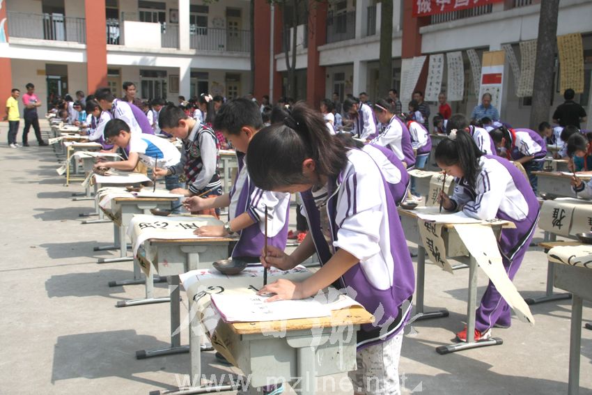 什地学校:百名学生现场展示书法