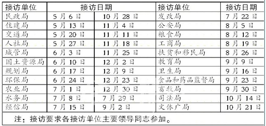 各镇乡、市级各部门: 《绵竹市市级部门联合接访工作实施办法》已经市处理信访突出问题及群体性事件联席会议审议通过,现印发给你们,请认真执行。 2013年5月14日 绵竹市市级部门联合接访工作实施办法 为进一步畅通信访渠道,建立健全领导干部联系群众的长效机制,切实维护人民群众的合法权益和社会和谐稳定,努力实现“事要解决、案结事了、息诉罢访”的信访工作目标,特制定本办法。 一、基本原则:(一)坚持以维护人民群众合法权益为根本出发点。对每一起信访案件,都要着眼于解决群众的合理诉求和实际困难,坚决杜绝掩着、拖着、办事效率不高的行为。(二)坚持以息诉罢访为目标。着眼于“事要解决”,坚决纠正满足于程序、形式上结案而不认真研究不息诉原因、不切实加强工作的敷衍塞责倾向,真正实现案结事了。(三)坚持依法按政策办事、实事求是处理问题。要严格按照国务院《信访条例》有关要求,以事实为根据,以法律、政策为准绳,防止随意表态,违规操作,坚决杜绝因变通政策而留下后遗症。 二、联合接访时间和地点:市级部门联合接访采取市级部门主要负责人轮流接访、常驻部门接访的形式进行。时间为每周星期一上午8:30-12:00,联合接访的接待地点设在市委群工部群众接待中心。 三、参加联合接访人员:(一)市级相关部门主要负责人(市处理信访突出问题及群体性事件联席会议成员单位)(具体安排见附件);(二)各入驻单位派驻群众接待中心工作人员。入驻单位根据上一年度上访情况统计结果,由市委群工部统筹安排。2013年入驻部门为人力资源和社会保障局、国土资源局、住房和城乡建设局、农业局、民政局、环保局。(三)司法局法律援助中心指派的律师。 四、联合接访工作要求:(一)各入驻单位推荐本单位一名工作经验丰富、责任心强、懂政策、会做群众工作的科室以上负责人在群众接待中心,代表本单位受理和接待群众信访。(二)参与联合接访的人员在市级部门联合接访日按时到市委群工部群众接待中心参加接访活动,不得缺席、迟到、早退。(三)对联合接访中受理的信访件实行“谁主管、谁负责”和“属地管理、分级负责”相结合的原则,各有关单位、部门须对受理的信访件实行跟踪处理、全程负责,并及时将处理进程和处理结果以书面形式送联席会议办公室(市委群工部内)。(四)公安局负责联合接访日现场秩序维护,依法处置突发事件工作,保证联合接访活动秩序井然。(五)市级相关部门联合接访和部门入驻工作情况纳入单位群众信访目标考核,并定期向市委、市政府汇报。(六)市委群工部做好宣传工作,在广播、电视、报纸予以公示,并做好接访的准备和协调工作。 五、入驻单位接访室职责:(一)代表本单位接待、受理、办理、反馈和办结本单位事权职权范围内的信访事项;(二)牵头协调、督办、落实市领导和上级部门交办的由本单位承担主办、协办责任的信访事项;(三)参与处置群众集体上访、重大上访事项;(四)参与信访事项的调处工作;(五)向信访人提供相关政策咨询和人性化服务。 附件:2013年绵竹市市级部门领导接访活动安排表 |