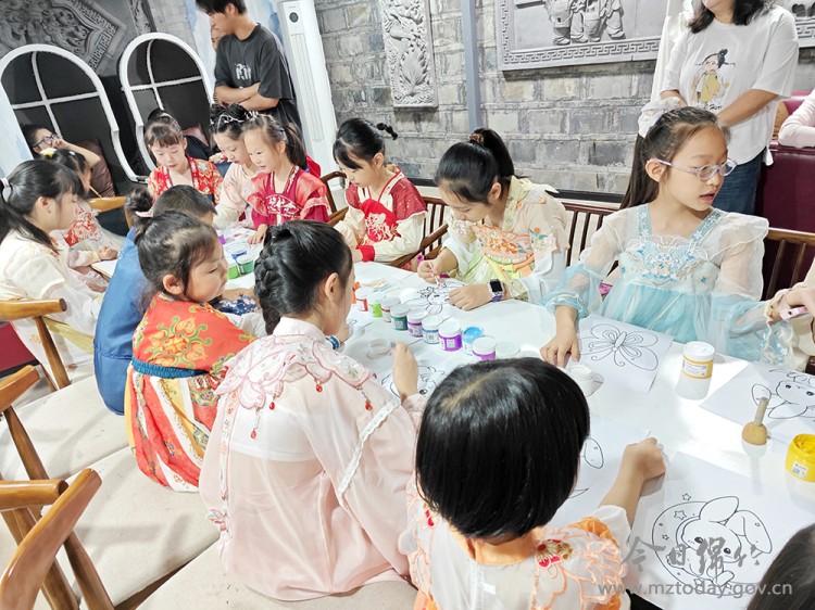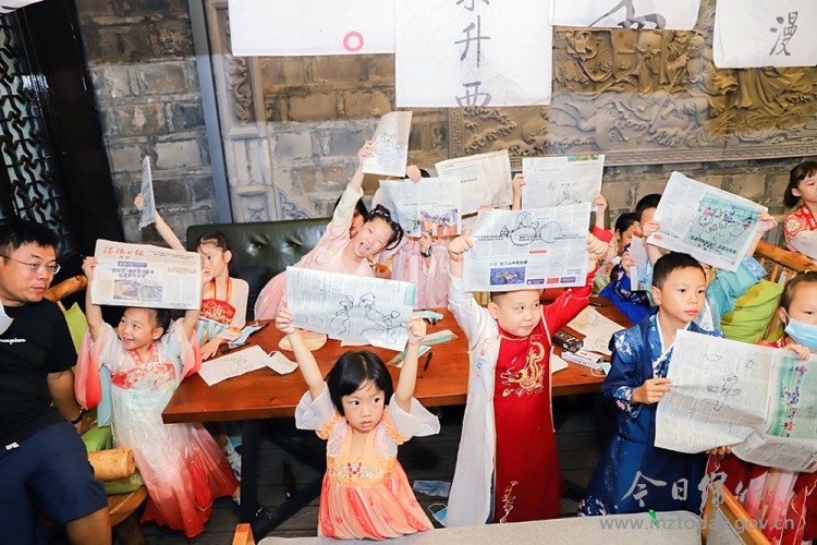 当天的体验活动中,在老师的指导下,孩子们亲手为漆扇扇面绘出独特的绚丽图案。每当扇面从水中惊艳呈现时,孩子们便发出阵阵欢呼。一旁的创意涂鸦区同样热闹,他们自由混合颜料,在画布上尽情挥洒,将奇思妙想化作缤纷的艺术创作。