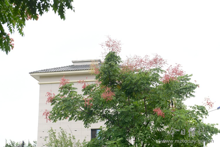 随着季节推进,栾树的果荚会从淡绿色逐渐变为粉红色,最后成为深秋街头最吸睛的“红灯笼”。这一特点使栾树享有“一树三景”的美誉:春天嫩叶带红,夏秋之交黄花满枝,秋季则果实缤纷。 城乡共赏,自然与城市的和谐共鸣 栾树不仅装点着绵竹的城市街道,也遍布乡村路旁。栾树喜阳耐旱,能很好地适应城市环境,其成活率高,观赏性强。 绵竹在实施乡村振兴战略中,林木景观打造是重要一环。从“一季花”到“四季春”的发展思路,让栾树这类具有明显季相变化的树种被广泛应用于城市绿化,成为连接自然生态与城市生活的重要纽带。 文化符号,承载秋日记忆的树木 栾树不仅为城市增添色彩,更成为承载人们记忆的文化符号。作家史铁生曾写道:“栾树就是一场盛大的秋天,象征着绚烂的一生。”如今,栾树正以它盛大而温柔的姿态,将绵竹城乡带入一个层次分明、光影交错的诗意季节。
