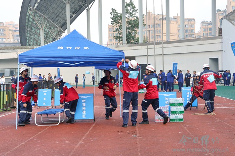 10月15日,绵竹市2025年基层应急队伍技能比武大赛暨武侯区邀请赛在我市体育中心举行。来自全市12个镇(街道)、绵竹市应急管理局机关、成都市武侯区、剑南春集团公司和绵竹市曙光救援中心的16支队伍共128名选手齐聚赛场,通过竞技比武锤炼实战本领,交流实战经验,为守护群众生命安全筑牢基层应急防线。 此次大赛紧扣应急救援实战需求,以理论知识考核与实操技能比拼相结合,精心设置了知识竞赛、团队体能、临时安置点搭建、灭火救援技能、地震救援技能、防洪抢险技能、医疗救护技能等科目。这些科目均源自应急救援一线的常用技能,既能全面检验基层应急队伍的协同作战能力和专业技能水平,也能精准暴露实战中的短板,为后续针对性提升应急救援技能提供重要依据。 在知识竞赛现场,参赛选手面对应急救援法规、消防安全常识、灾害处置流程等试题沉着应答,展现出扎实的理论功底和科学的决策思维。 “快!支架固定!” 在临时安置点搭建赛区,参赛选手的动作如闪电般迅速,帆布在他们手中翻飞,金属支架的碰撞声清脆作响。大家配合默契,有人迅速插入支架,有人快速系好篷布,有人熟练制作简易担架……短短几分钟,原本散落的零件,在众人的协作下,快速搭建起一个个临时帐篷。 与此同时,防洪抢险技能比赛现场同样扣人心弦。随着裁判的口令,选手们迅速将防汛物资转运到受灾地点,并熟练组装防洪挡板,搬运防汛沙袋对挡板进行加固。随后,选手们如离弦之箭般冲向积水处,快速启动高压消防泵排水,整套流程行云流水,展现出扎实的专业功底。围观人群不时爆发出阵阵惊叹声,为选手们的精湛技艺点赞。 “这次比赛让我深刻认识到应急救援工作的艰辛与挑战,也锤炼了自己迎难而上的精神。”绵竹市应急管理局机关队参赛选手王文斌说,接下来自己将有针对性地加强技能训练,不断提升基层应急救援处置能力。 “这次应邀参赛,是一次非常好的加强学习交流、促进技能提升的过程。通过此次比赛,我们将取长补短,磨砺技能,持续提升基层应急救援实战能力。”成都市武侯区应急参赛代表队队长张满飞说。 绵竹市防震减灾中心副主任青茜表示,基层队伍是应急管理“最后一公里”的关键力量。此次基层应急队伍技能比武大赛旨在加快构建“全灾种、大应急”格局,进一步提升基层应急队伍快速反应能力和救援能力的重要举措。绵竹市与武侯区的共竞共赛也是强化推动形成协调联动应急救援体系的具体实践,将为构建更加完善的成德眉资同城化应急救援保障体系奠定坚实基础。