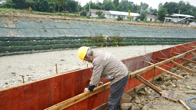 10月24日上午,记者在汉旺镇白溪河群新村段看到,长达615米的河道生态折叠框挡墙及护坡修护工程已然成型,施工人员分布在河道沿线,正全力进行河道护栏基础的浇筑作业,现场一派繁忙景象。
