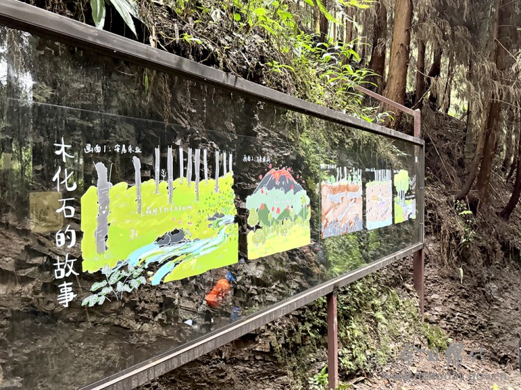 绵竹萤飞谷自然教育解说径全长1.2km,依托区域内保存完好的亚热带植被群落、溪流生态系统以及天然地质环境规划建设,严格遵循“在地适配”与“低干扰”原则,最大限度保留自然原貌。解说径沿线精心设置了54块原创全手绘科普解说牌,采用“图文+图标+二维码”的多元呈现方式,不仅介绍大熊猫、川金丝猴、珙桐等本土珍稀动植物的生态特征,还生动解读萤火虫、溪流循环、飞来峰演化等自然知识。