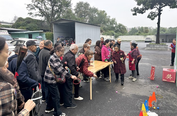 在颇具古风的邻里投壶比赛中,老人们兴致勃勃地进行投壶PK,志愿者们则在一旁贴心协助,为行动不便的老人递箭、捡箭,获胜队伍获得了精美的杂粮礼盒。此外,怀旧套圈游戏让老人们有机会套取搪瓷碗、老式暖水瓶等充满年代感的奖品。而健康有奖问答则围绕科学饮食、日常起居、情绪管理等内容设置问题,在轻松互动中向老人们传递了实用的健康养老知识。