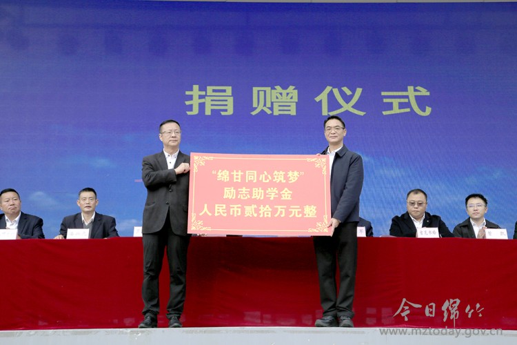 捐赠仪式上,绵竹向甘洛捐赠了“绵甘同心筑梦”励志助学金20万元。房义勇、罗继军等绵、甘两地领导和嘉宾为10名受助学生代表发放了助学金。