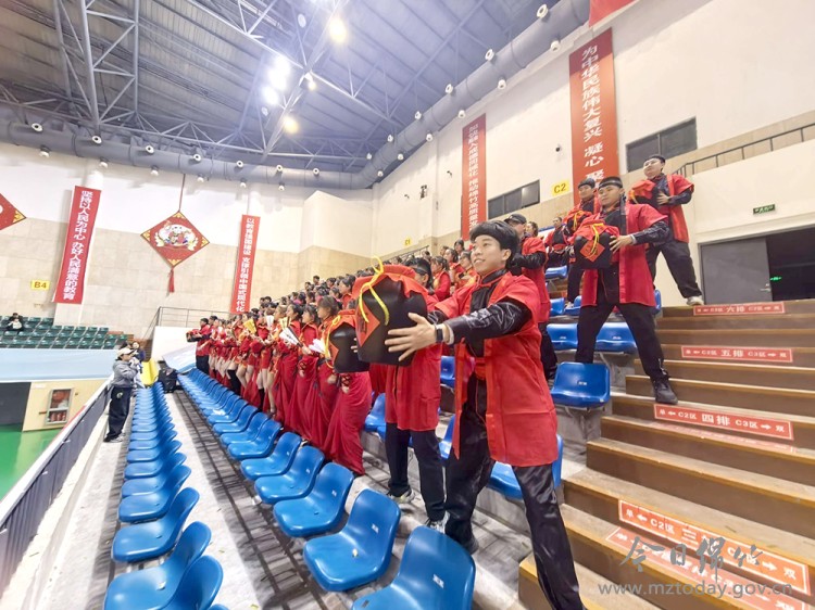 “虽然大家都是‘业余选手’,认真起来可不输专业团队。我们这次选拔了100名核心啦啦队员,目标就是将‘画入赛场,酒助锋芒’的理念贯穿始终。”南玉冰介绍道,“‘大德如阳,征服赛场!德阳重装,雄起!’这不仅是一句口号,更是我们所有球迷的心声。我们要在主场看台上,把绵竹人的热情、豪迈与好客,毫无保留地展现给全场观众和对手。” 彩排中最具创意的,就是扇子舞与鼓乐齐鸣。当经典歌曲《霍元甲》的激昂旋律响起,女队员们手持彩扇,翩然起舞,刚柔并济;男队员们则擂动战鼓,气势磅礴。更有队员别出心裁地抱着象征绵竹美酒的酒瓶道具伴舞,这一充满本土情怀的设计,瞬间将现场气氛推向高潮。 “虽然彩排训练有些辛苦,但大家都斗志昂扬。我们希望通过自己的努力,为德阳队注入最强的精神力量。”来自绵竹市第一示范幼儿园的啦啦队员刘霜表示,大家的目标很明确,就是助力德阳战胜绵阳。