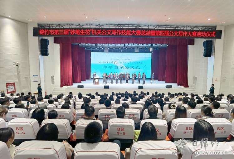 活动对绵竹市第三届“妙笔生花”机关公文写作技能大赛进行了总结,并对涌现出的优秀选手进行表彰。经过严格评审,第三届大赛决出综合奖及领导讲话类、公文撰改或工作意见类单项奖一等奖5名、二等奖9名、三等奖16名。大赛充分展现了全市机关干部扎实的文字功底和良好的精神风貌,达到了“以赛促学、以赛提能、以赛育才”的预期目的。 刘丁滔宣布第四届“妙笔生花”机关公文写作技能大赛正式启动。他指出,公文写作是以文辅政的重要载体,是机关干部的基本功。大赛的连续举办,有效促进了广大干部从“埋头拉车”向“抬头看路”转变,服务大局的意识和以文辅政的能力得到普遍提升。他希望,全市青年干部要以此次大赛为新起点,持续锤炼思维、提升格局、沉淀担当,将写作能力转化为推动工作的实际成效,为绵竹高质量发展贡献更多智慧和力量。 启动仪式后,组委会举行了第四届“妙笔生花”机关公文写作技能大赛赛前培训,为全市各镇(街道)、市级各部门的259名报名参赛选手进行辅导。 市委办公室、市政府办公室、市委组织部、市总工会、团市委、市妇联等单位主要负责人,各镇(街道)组织委员、市级有关部门分管领导、团组织书记以及大赛获奖选手、报名参赛选手参加启动仪式。