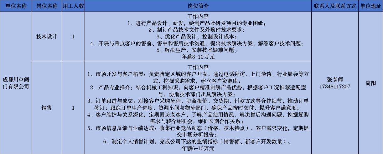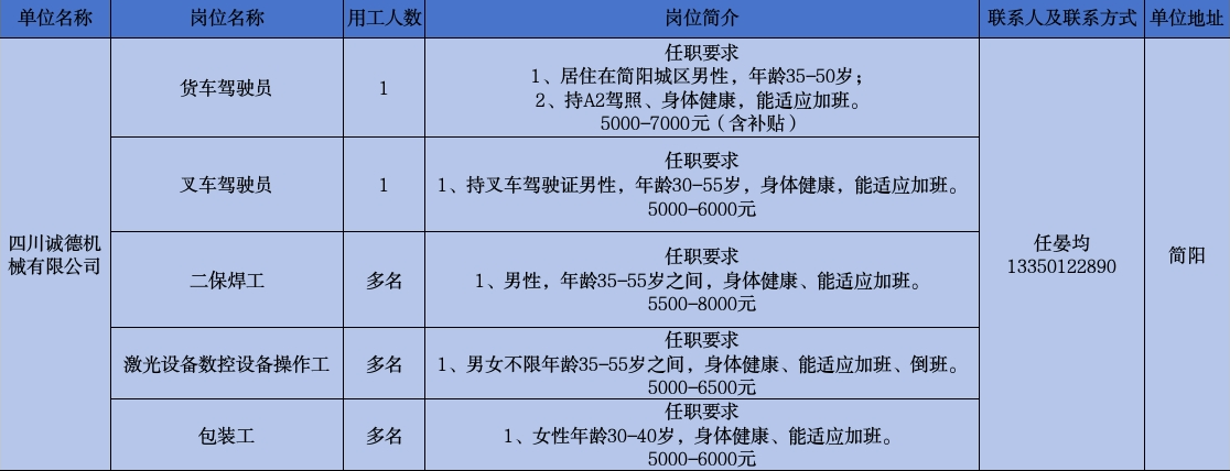还在为找不到工作苦恼?那就看过来,总有一款适合你。一大波“岗位速递”等着你! 一、四川诚德机械有限公司