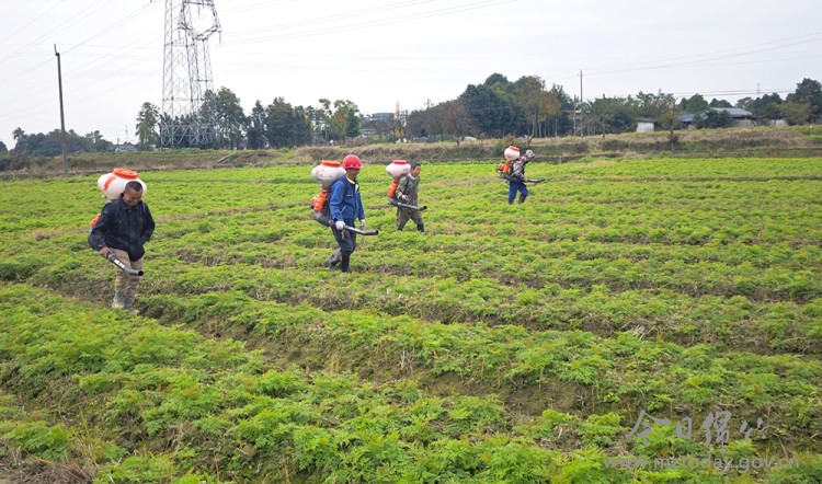11月18日上午,记者在汉旺镇武都社区2组看到,连片的川芎长势喜人,绿意盎然,散发出阵阵药香味。村民们分散在田垄间除草、施肥,进行病虫害防治,为一年的好收成打下坚实基础。