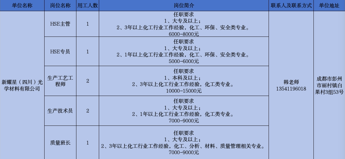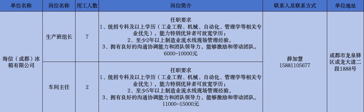 还在为找不到工作苦恼?那就看过来,总有一款适合你。一大波“岗位速递”等着你! 一、海信(成都)冰箱有限公司