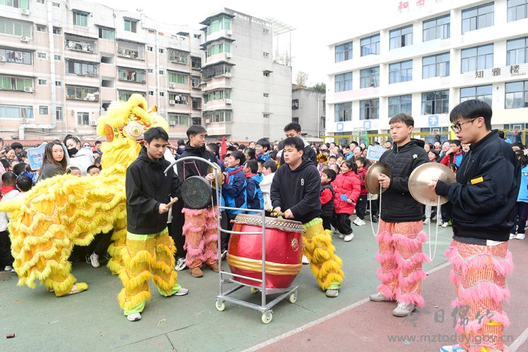 开幕式上,来自四川文化传媒职业学院体育产业学院的龙狮队来到现场,举行了近半小时的舞龙、舞狮 “非遗”技艺表演,让该校师生大饱眼福。舞狮队员冯文坤告诉记者,该校是天河小学的共建学校,他们一共有21名学生参加表演,让同学们近距离感受中国传统文化的独特魅力。
