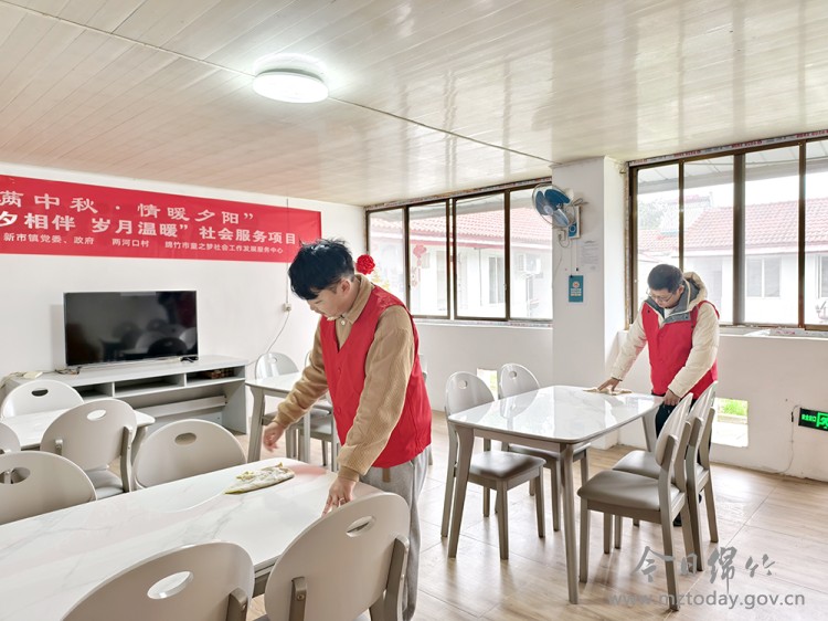 “唐叔,最近身体怎么样?家里有啥需要帮忙的,尽管跟我说!”11月17日,新市镇两河口村 “一串红” 志愿者服务队的队员们来到特殊困难老年人唐国森家中,细致询问他的饮食起居和身体状况,并拿起扫帚、抹布打扫屋内卫生,把杂乱的角落收拾得干干净净。 临近中午,村里的幸福食堂飘出阵阵饭菜香,孤寡、独居等特殊困难老人们陆续前来就餐,一碗碗热气腾腾的饭菜,不仅暖了老人们的胃,更暖了他们的心。