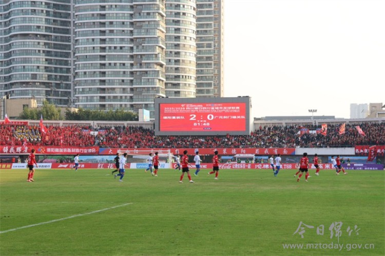 11月23日下午,在2025/2026赛季四川省城市足球联赛川北赛区小组赛末轮中,德阳重装队主场以2:0战胜广元剑门雄关队,以川北赛区小组第二的战绩锁定“川超”第二阶段资格。