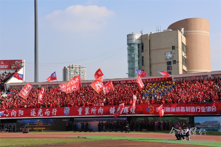 赛场内,球员拼抢激烈、斗志昂扬,竞技激情拉满;赛场外,绵竹特色好物人气爆棚、烟火升腾。体育活力与地域韵味双向交融,尽显赛事与城市文化的独特魅力。 绿茵逐梦竞风流 主场鏖战燃激情 绿茵场上,比赛尚未开始,气氛已提前点燃。球迷们挥舞旗帜,高举助威标语,看台渐渐汇成一片红色海洋,将期待与热情洒满整个体育场。