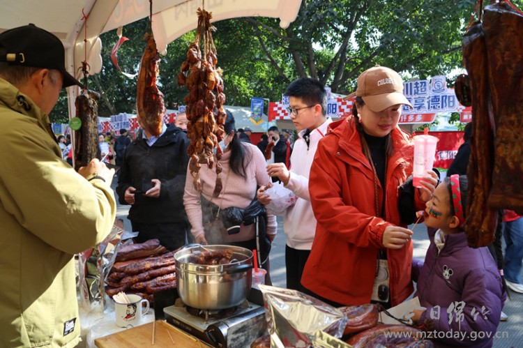 特色美食更是激发了球迷们的味蕾体验。清平山腊肉遵循古法工艺腌制晾晒,色泽红亮、腊香浓郁,入口肥而不腻,球迷们争相选购品尝。“这已经是我第四次来参展了,很多球迷朋友对我们清平镇的山腊肉和山野菜非常感兴趣。”清平山货负责人谢德勇说,借助“川超”这一高人气平台,不仅提升了产品销量,也将山里的土特产推广了出去,让更多人了解清平、走进清平、爱上清平。