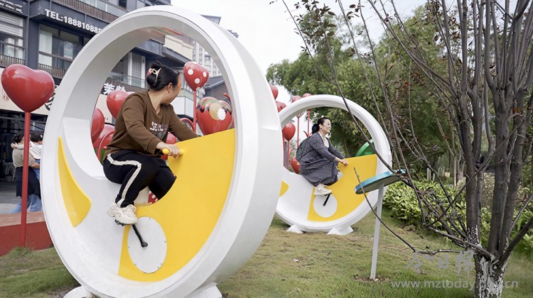 11月23日,记者来到“健康一条街”看到,单车喷泉、儿童视力自测表、免疫规划健康知识宣传等特色点位错落分布,吸引不少市民和游客驻足体验、玩耍。“我经常来这里散步,这些设施让人在潜移默化中就能学到健康知识,好玩又实用。” 市民王晓英说。