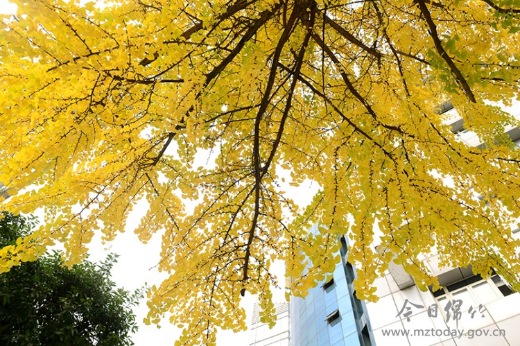 冬阳透过枝叶洒下暖意,光斑在楼房的墙上跳跃,与远处隐约的龙门山脉遥相呼应。金黄与湛蓝交织,凛冽与温暖并存,绵竹的初冬因这一抹亮色而多了几分雍容。