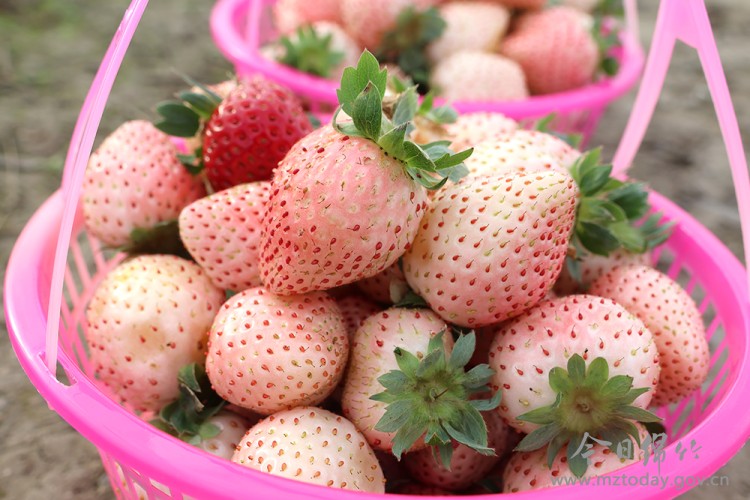 11月26日,记者在位于富新镇文永村4组的强友家庭农场看到,大棚内一排排整齐的草莓垄上,一颗颗精致小巧、色泽鲜艳的草莓在绿叶的掩映下若隐若现,空气中弥漫着甜甜的香味。其中,白草莓尤为引人注目,这是近两年该农场新引进的品种,其果肉呈奶白色,口感清甜多汁,深受消费者喜爱。