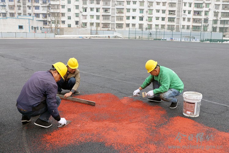11月26日下午,记者在项目施工现场看到,在地面部分,工人们正忙着进行园林绿化和塑胶跑道、曲棍球场施工,地下停车场已进入装饰装修和设备安装的关键环节。
