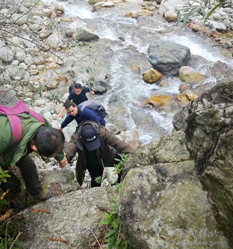 为获取真实、完整的野生动物监测数据,德阳熊猫分局联合绵竹熊猫总站组成专项巡护队,与龙宝坪管护站一线巡护员共同开展生态巡护。巡护途中,队伍艰难穿行于乱石密布的山地,在溪流上临时架设简易木桥,更屡屡与高悬树梢的马蜂巢狭路相逢。尽管险象环生,队员们依然严格循着预设样线推进,深入野生动物活动频繁的核心地带。历经近一小时的隐蔽蹲守,一道魁梧的身影突然闯进监测镜头,正是国家一级保护野生动物、被誉为“高山勇士”的四川羚牛。