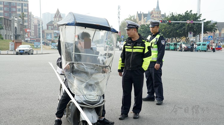 为切实消除道路交通安全隐患,保障驾乘人员人身安全,连日来,市公安局交警大队在辖区重点路段设置检查点,集中开展摩托车、电动车违规加装遮阳篷专项整治行动,全力守护广大群众出行安全。
