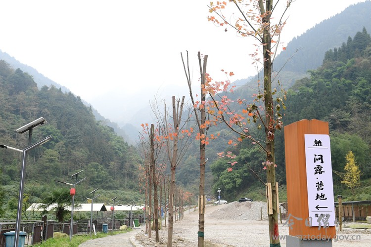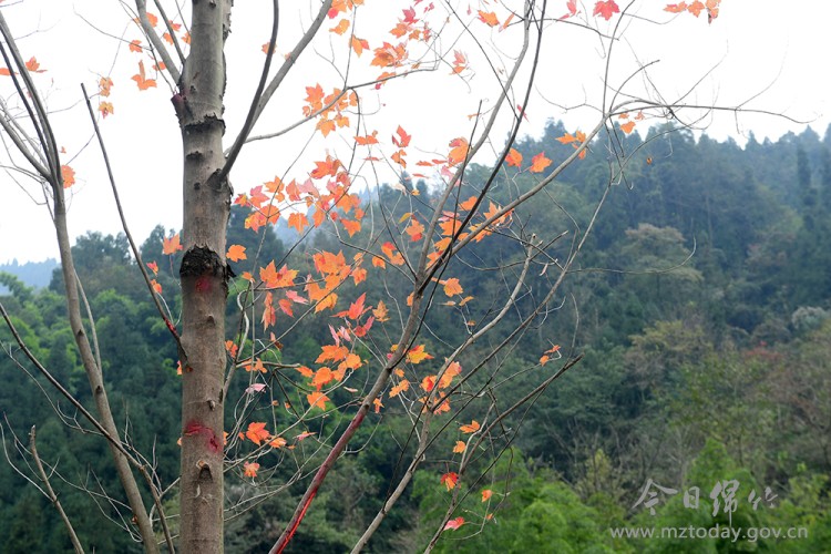 沿河而行,道路旁的一株株红枫在冬日暖阳下如火如霞,与远处苍翠的群山形成鲜明对比,为静谧山谷添上了一抹温暖的亮色。河中流水潺潺,遇落差形成清浅瀑布,水声淙淙,更显山间幽静。沿岸步道整洁,与自然景观和谐相融,成为很多市民和游客散步、骑行、摄影的好去处。