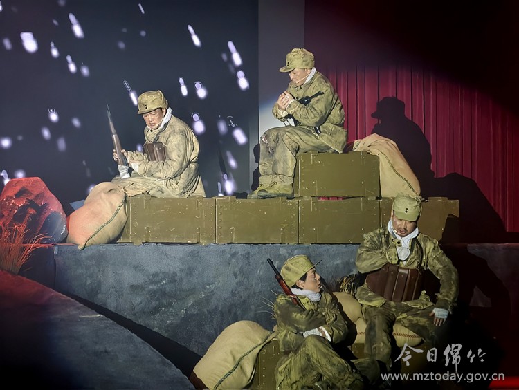 “继光老兵・戎耀传承”红色宣讲剧采用历史与现代双线交织的叙事结构,将红色宣讲巧妙融入剧情脉络,情景演绎重现峥嵘岁月,多媒体互动打破时空界限,“沉浸式”讲述直抵人心,只为在光影流转间,完成一场跨越时空的精神对话。在剧中情景演绎环节,一条时间线聚焦残酷的朝鲜战场,冰天雪地中,志愿军战士用热血与生命捍卫家国;另一条时间线定格当下的幸福和平生活,烟火气里,英雄精神在代代相传中熠熠生辉。两条脉络在舞台上交汇融合,令战火淬炼的坚定信仰与和平年代的默默坚守交相辉映,奏响了一曲荡气回肠的忠诚与传承的时代交响。