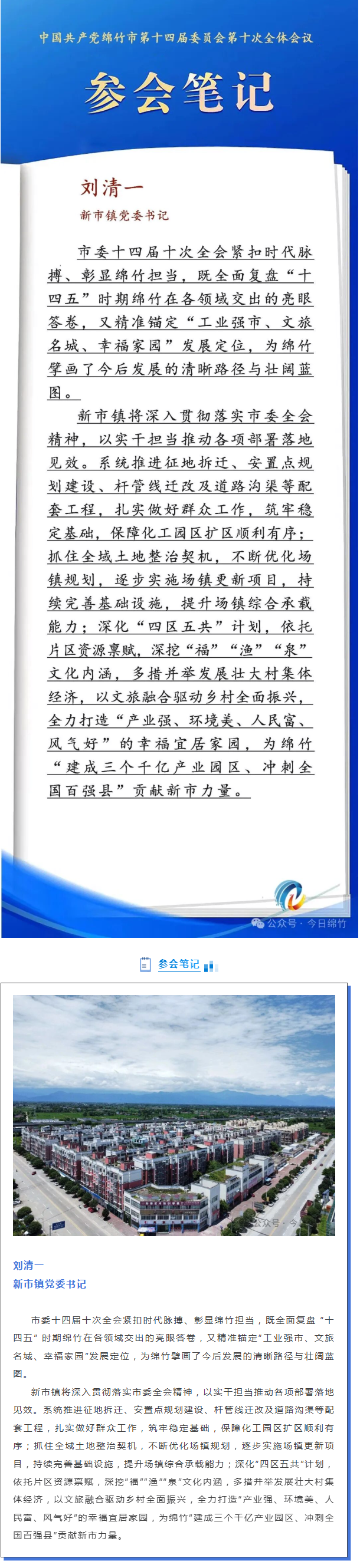 【学习贯彻市委十四届十次全会精神】新市镇党委书记刘清一:锚定战略绘蓝图 实干担当兴新市