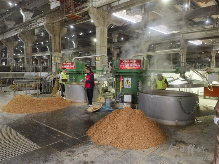 竞赛严格对标行业高标准,设置理论知识、生产半成品酒的质量鉴别、实际工艺操作技能三大模块。其中,理论知识、生产半成品酒的质量鉴别竞赛已于20日进行完毕。技能操作竞赛于21日在剑南春大唐国酒生态园酿造车间内展开,选手们围绕上甄和量质接酒等核心工序展开实战较量,操作严谨规范,充分展现了扎实的技艺功底与精益求精的工匠精神。赛事期间,组委会还组织选手参观了剑南老街天益老号博物馆,深化了对川酒文化与技艺传承的理解。