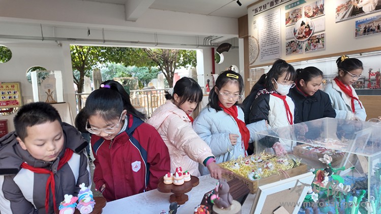 展览现场,各类创意美术作品与精巧手工作品整齐陈列,涵盖绘画、剪纸、面塑等类型,吸引师生驻足观看。“看到自己的作品能在这里展出,我超级开心!”参展学生刘纯栖说,能够把家乡的故事变成手中的作品,这种感觉特别美好。 南轩小学美术教师宁琳介绍,本次展览是“五育并举”在校园扎实落地的生动实践。学校一直致力于将非遗融入美术课堂,引导孩子们在行走中观察生活,在实践中传承文化,培养孩子们敢于创新的思维,以及对绵竹非遗的深厚情感。