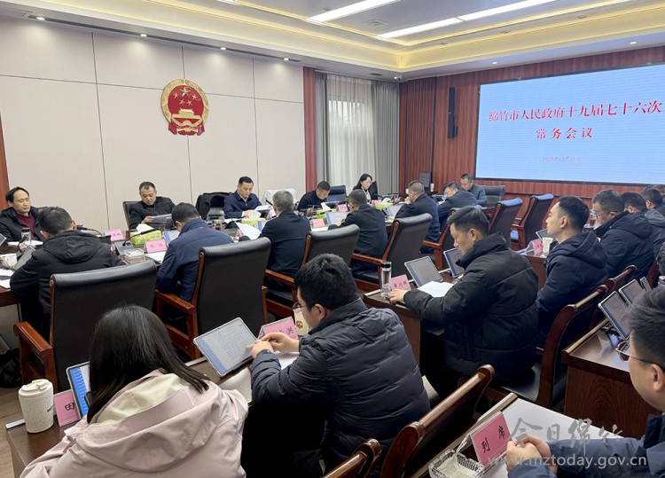 12月31日下午,市长潘鹏主持召开市十九届人民政府第76次常务会议。常务副市长刁斌,副市长谭琦、古广华、樊杰成、陈军、邢凯,提名副市长刘伟参加会议。 市委常委、政法委书记房义勇,市人大常委会副主任徐关鹏,市政协副主席曹世民,绵竹高新区党工委委员、管委会副主任李启东列席会议。