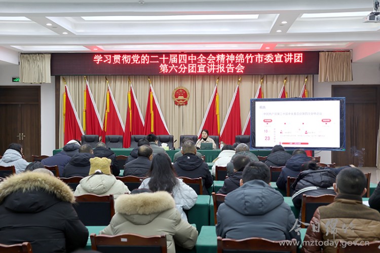 为深入学习宣传贯彻党的二十届四中全会精神,绵竹市精心组织市委宣讲团,面向基层、面向群众开展多层次、全方位、广覆盖的宣讲活动。自去年12月以来,全市13个宣讲分团深入镇(街道)、机关、学校、企业等领域,用通俗易懂的语言、生动鲜活的案例,将全会精神送到干部群众心坎上,在全市营造出浓厚的学习贯彻氛围。 精心组织部署 实现宣讲全覆盖 市委高度重视宣讲工作,组建了由领导干部、专家学者、先进模范等组成的市委宣讲团,以全会通过的《中共中央关于制定国民经济和社会发展第十五个五年规划的建议》和习近平总书记在党的二十届四中全会上的重要讲话精神为核心,以省市审定的宣讲提纲为基础,结合绵竹实际编写本土化宣讲材料,确保宣讲既准确又接地气。市委宣传部牵头组建了包括6个镇街宣讲分团和市直机关、学校、企业、地方金融单位、新兴领域以及新时代文明实践青年宣讲分团、劳模工匠宣讲分团在内的13支宣讲队伍。 宣讲工作坚持分系统推进、分层级实施。镇街宣讲分团在所负责镇(街道)本级及所辖村(社区)举行多场报告会;各系统宣讲分团在本领域内开展不少于5场集中宣讲;青年宣讲分团面向广大青年群体;劳模工匠宣讲分团深入企业车间班组,确保宣讲触角延伸至每一个角落。 创新宣讲形式 提升宣讲实效 连日来,各宣讲分团在总结运用以往经验的基础上,积极探索通俗化、大众化宣讲路径。宣讲团成员善于运用事实数据、典型案例和接地气的语言,将宏观政策与微观实践相结合,把“书面语”转化为“家常话”,让干部群众听得懂、能领会、可落实。
