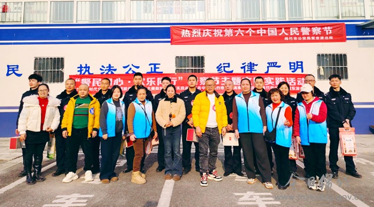 为深化警民鱼水情、弘扬文明新风,1月9日,在第六个中国人民警察节来临之际,绵竹市新时代文明实践中心办公室联合市公安局紫岩派出所、城东派出所及绵竹市爱之援义工协会,在紫岩街道派出所举行了“警民同心 欢乐同行”警察节主题文明实践活动。40余名公安民警与数名群众代表参加活动。