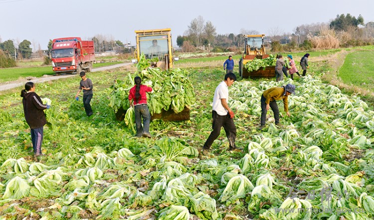 在紫岩街道蒲柳村,南充人蒲泳涛从在这里建立青菜种植基地,到创办四川回乡妹食品有限公司,并将其发展成为四川省级农业产业化重点龙头企业,转眼已有10年时间。现在,该公司已成为带动当地特色农业产业发展、促进农民增收致富的重要引擎。 每年立春前后,是青菜采收的高峰期。眼下,紫岩街道、富新镇、汉旺镇、孝德镇等地蔬菜种植大户的青菜收割全面展开。他们组织劳动力把青菜砍倒后,先在田间晾晒二三天,再用车辆将其运到四川回乡妹食品有限公司,由该公司进行统一收购、盐渍。