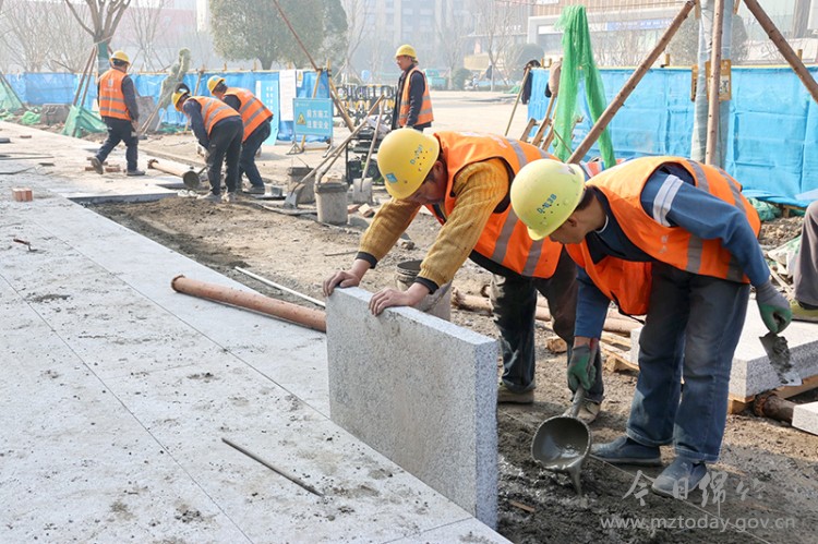 1月15日上午,记者在施工现场看到,工人们各司其职,忙碌于各个作业面:周边建筑外立面修缮已进入收尾阶段,新的装饰材质让建筑风貌更显典雅时尚;地面石材铺装按照设计图纸精准铺设,平整光洁的路面雏形初现;绿化种植区域内,各类乔灌木有序栽种,为广场增添自然生机。