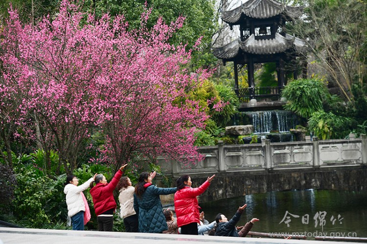 大寒时节,绵竹月亮泉公园内却春意盎然。红梅与蜡梅竞相绽放,朱砂点点的红梅如云似霞,金灿灿的蜡梅暗香浮动,吸引了众多市民和游客前来观赏打卡。