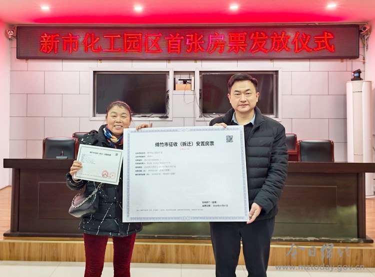 1月19日,新市化工园区首张房票发放仪式在新市镇举行。来自新市镇红豆村9组的村民周太富、曾德萍夫妇作为新市化工园区扩区项目被征拆人,领到了编号为“001”的房票。这标志着新市化工园区扩区征迁安置工作迈入房票安置新模式,为后续涉迁群众安置工作奠定了良好基础。