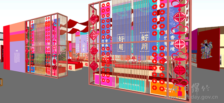 展览期间,我市还将在中国非物质文化遗产馆同步举办绵竹“非遗好物集”活动,集中展销年画衍生文创与传统手作产品,为观众提供沉浸式的非遗体验,进一步推动绵竹非遗文化的活态传承与广泛传播。 (图为设计效果图)