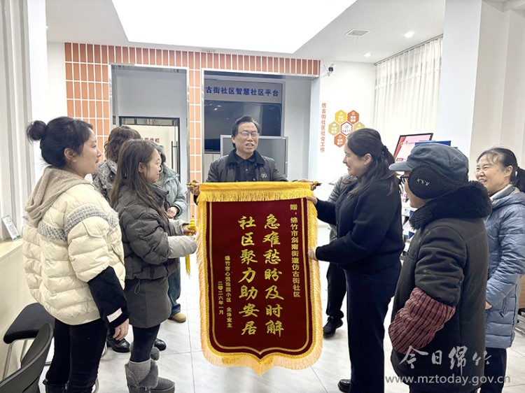 1月19日,剑南街道仿古街社区收到心悦雅园小区居民送来的一面写着“急难愁盼及时解,社区聚力助安居”的锦旗,这既是居民对社区工作的高度认可,也是社区基层治理有温度、见实效的生动体现。