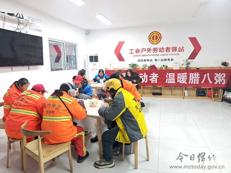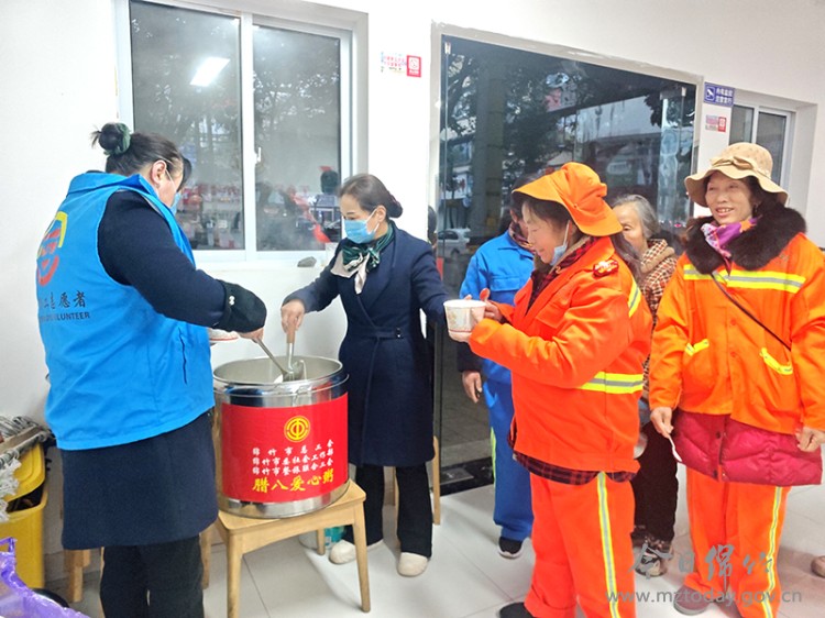 1月26日上午,市总工会开展了腊八节送温暖活动,为环卫工人、外卖小哥、快递小哥等户外劳动者送去了腊八粥和节日的祝福。