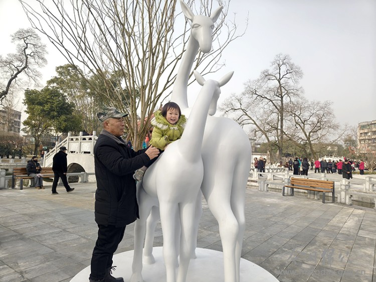 走进公园,平整的游园步道蜿蜒向前,将古韵新景串联一体,两侧错落的绿植长势喜人,枝叶随风轻摇,为这场久别的重逢添了几分生机与活力。入园不远处,“杜甫咏绵竹”石碑和长颈鹿雕塑两处老地标映入眼帘,瞬间唤醒了几代绵竹人的记忆。老人追忆往昔,孩童好奇打量,定格下一幕幕跨越代际的温情瞬间。 “小时候我在这里拍过照,今天带爸爸也来拍一张。”在绵竹生活了30多年的金川人李智慧熟练地调整着手机角度,随着快门声的响起,精神矍铄的老父亲在长颈鹿雕塑前留下了珍贵的影像。