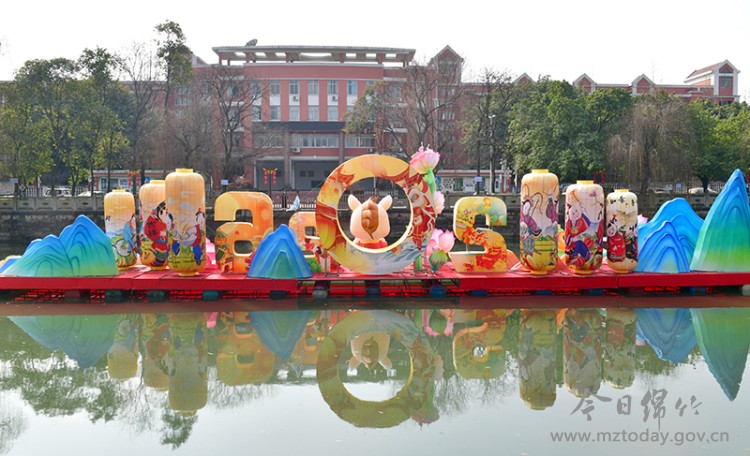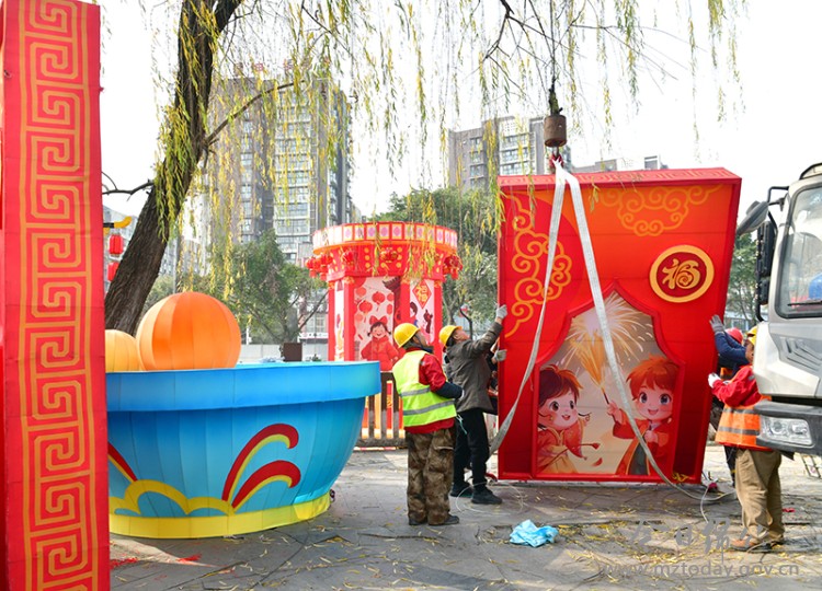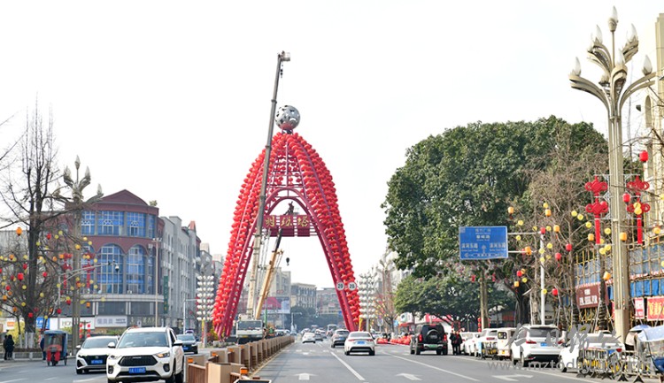 随着新春佳节和2026年第二十五届绵竹年画节的临近,我市春节氛围营造工作正有序推进,一股浓浓的年味扑面而来。市区主要干道大红灯笼及彩灯挂起来,马尾河从飞云桥至紫东桥的13组河灯及桥梁的灯饰布置正加紧进行。