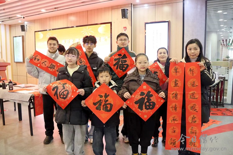 新春佳节将至,为丰富群众的精神文化生活,营造喜庆的节日氛围,绵竹市新时代文明实践中心办公室联合市社科联、市文联等单位在市新时代文明实践中心举行了2026年“‘惠’享万家 送春联 送祝福”新时代文明实践活动。